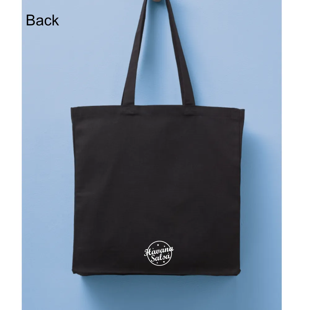 Cuban-inspired artwork on a carry-everywhere tote – studio practical, street sharp. Wear the Rhythm. Own the Movement.